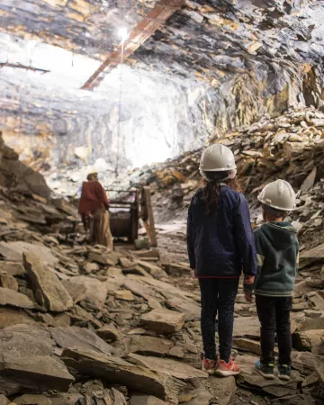 a Mine Bleue, única en Europa, desvela los misterios de la pizarra. Descienda 126 metros bajo tierra para descubrir la increíble historia de la pizarra y de sus mineros. La Mine Bleue, antigua explotación minera transformada en atracción turística, le reserva muchas sorpresas. Con sus galerías secretas, sus herramientas milenarias y sus anécdotas insólitas, esta visita guiada le sumergirá en el fascinante mundo de los "perreyeux", los hombres que dieron forma al paisaje del Anjou Bleu. ¡Impresionante!