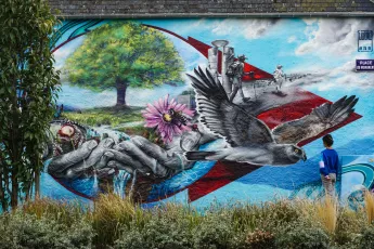 Acérquese a Pré-en-Pail-Saint-Samson para dar un colorido paseo por sus callejuelas. Aquí, las fachadas son más que muros, son lienzos en los que se expresan los artistas. Levante la vista para admirar los vibrantes frescos que convierten la ciudad en una galería al aire libre: aquí, las obras de los artistas colombianos Pac Dunga y Arté Vital; allí, los pinceles del pintor normando Bertrand Godard; más allá, un sonriente Fernandel disfrutando de una pizza bajo el pincel de Lionel Rocton.
