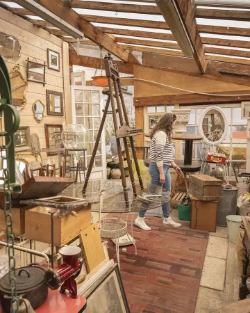 Al girar por una callejuela empedrada, La Chart re-sur-le-Loir despierta el aroma de antaño. De viernes a domingo, el pueblo de los anticuarios se viste de gala para la ocasión. Entre los puestos improvisados que se desparraman por las aceras y las tiendas que desvelan sus tesoros, comienza la búsqueda de la perla rara. Aquí, un escaparate muestra muebles con una pátina de antigüedad, mientras que un gabinete de curiosidades exhibe bustos de escayola y conchas fosilizadas en vitrinas. Más adelante, llama la atención un revoltijo de objetos industriales de época, mientras que a la vuelta de la esquina se amontonan libros raros en una librería de antigüedades. Tras este paseo entre el pasado y el presente, diríjase a la terraza delHôtel de France, mítica residencia de los pilotos de las 24 Horas de Le Mans.