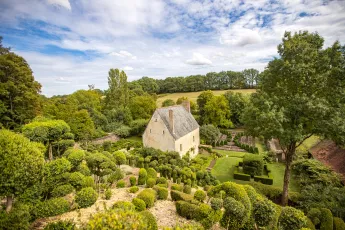Tras recorrer en bicicleta los viñedos de Jasnières el día anterior, hoy se pondrá al volante para continuar su descubrimiento enológico. La Ruta del Vino del Valle del Loir se extiende ahora a lo largo de más de sesenta kilómetros entre viñedos, serpenteantes ríos Loir y apacibles pueblos. Su primera parada es Beaumont-sur-Dême. El Prieuré de Vauboin le abre las puertas de su jardín medieval, catalogado como "Jardín notable". Al cruzar las puertas, entrará en un mundo donde la naturaleza se esculpe con el arte. El jardín está dividido en dos zonas diferenciadas: al este, la huerta y el vergel ofrecen frutas y verduras acordes con la tradición monástica de autosuficiencia; al oeste, un claustro vegetal y un laberinto de boj invitan a la meditación y la contemplación. Estos árboles centenarios, podados con precisión durante generaciones, crean asombrosos volúmenes geométricos que parecen desafiar las leyes de la naturaleza.