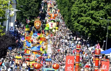 El punto culminante de esta semana alocada es el desfile nocturno. No tiene equivalente en Francia y sorprende al visitante por su tamaño y el ingenio de los dispositivos tecnológicos usados. Aquí la inventiva no parece tener límites y gracias a ella se consigue un espectáculo inaudito.