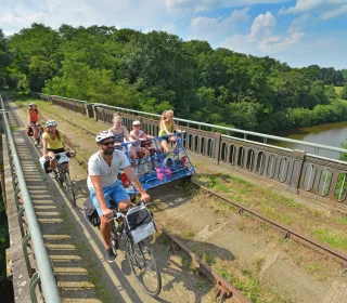 Te encantará superar las pasarelas, cruzar esclusas, circular por pistas sin asfaltar, tomar el imponente viaducto ferroviario cerca de Laval o comer en un bistrot de pueblo. La mayor parte del recorrido transcurre por vías verdes que no comparten los vehículos motorizados.